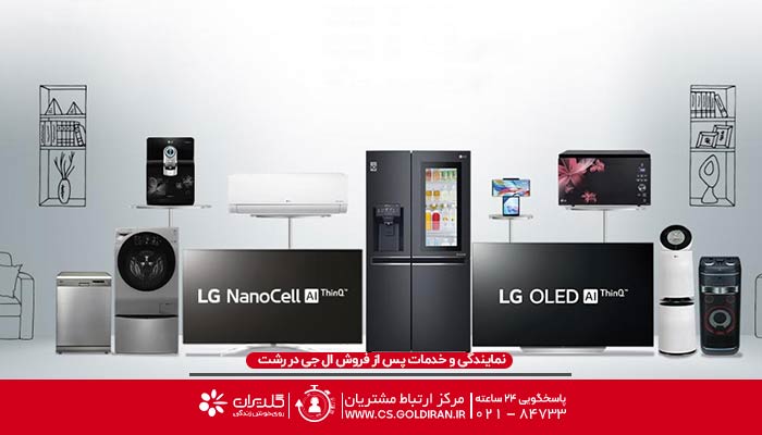 نمایندگی ال جی در رشت با تکنسینهایی مجرب و آموزشدیده برای تعمیرات تمامی لوازم ال جی با ضمانت گلدیران از جمله تعمیرات محصولات خانگی، تعمیر و رفع ایراد دستگاههای صوتی و تصویری و رفع مشکل سیستمهای تهویه مطبوع خانگی آمادهی ارائهی خدمات هستند. کارشناسان نمایندگی ال جی در رشت در صورت نیاز به شما مشتری گرامی مشاورههای فنی مورد نیاز را ارائه خواهند داد و در صورت وجود مشکل فنی و نیاز به تعمیرات دستگاه، قطعات مورد نیاز را تهیه نموده و برای تعمیرات دستگاه از قطعات اصل و استاندارد استفاده خواهند نمود. بر اساس مفاد کارت گارانتی در مدت زمان گارانتی بیشتر موارد تعمیراتی فنی شامل هزینه نمیشود و پس از اتمام دوره گارانتی همچنان این امکان وجود دارد که تمدید گارانتی دستگاه ال جی را انجام دهید و همچنان از شرایط گارانتی استفاده نمایید.